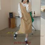 ジャンパースカート ロングワンピース vネック ワンピース 膝丈 マタニティ 通勤着 カジュアル 着回し 着痩せ 可愛い ゆったり 体型カバー 20代30代40代50代