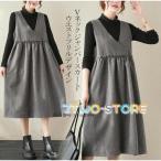 ジャンバースカート ジャンスカ サロペット レディース オールインワン ハイウエスト ひざ丈 膝下 ワンピース マタニティ 秋 オーバーオール
