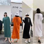 爆買 夏新作 ロングワンピース Tシャツワンピース レディース 無地 半袖 ロング丈 マタニティ ワンピース きれいめ コットン リゾートワンピース 大きいサイ
