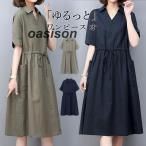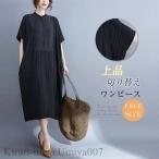 ワンピース リネンワンピース 半袖 レディース きれいめ 森ガール 膝丈 ロング マキシ 女子 学院風 マキシ ワンピース 綿麻 夏 ブラック グリーン