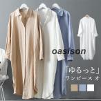 シャツワンピース レディース ロングワンピース ブラウス 綿麻 無地 長袖 ロングシャツ ゆったり 体型カバー 着痩せ 春夏 大きサイズ マタニティ