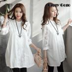 マタニティ 妊婦 妊娠 ワンピース ワンピ マタニティウエア トップス シャツ ロングシャツ ウエア ブラウス シャツブラウス レディース ロング丈 7分丈袖 レース