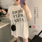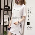 爆買 tシャツ ロング丈 半袖 オーバーサイズ レディース tシャツワンピース ロンt ゆったり 英字プリント 体型カバー 夏新作 おしゃれ 春夏 トップス