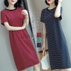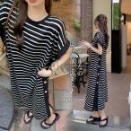 爆買 夏新作 ロングワンピース Tシャツワンピース レディース ボーダー 綿混紡 半袖 ロング丈 マタニティ ワンピース きれいめ コットン リゾートワンピース