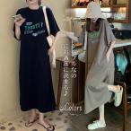 ロングワンピース ワンピース レディース 春 夏 ゆるシルエット 半袖 Aライン ゆったり ロング丈 マキシワンピース ワンピ マタニティ 体型カバー シンプル スト