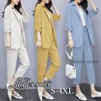 セットアップ レディース パンツスーツ 夏 ジャケット ブレザー 上下セット 3点セット スーツ 長袖 オフィス おしゃれ 体型カバー 着痩せ 安い 入学式 通勤 OL