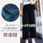 パンツ レディース 春 ワイドパンツ 接触冷感 コーデュロイ 春 夏 プリーツ リブパンツ ゆったり ウエストゴム リラックス