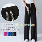 パンツ レディース 春 ワイドパンツ 接触冷感 プリーツパンツ 春 夏 秋 冬 プリーツ リブパンツ ゆったり ウエストゴム リラックス