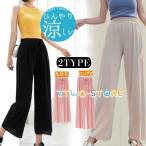 目玉 ワイドパンツ レディース 接触冷感 ひんやり パンツ スカーチョ 体型カバー 楽ちん ロングパンツ ゆったり 夏 とろみ 着痩せ 無地