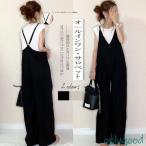 サロペット レディース ワイドパンツ オールインワン ガウチョ シンプル ロング丈 カジュアル ゆったり ボトムス 体型カバー おしゃれ 大人 秋