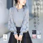 カットソー レディース ニット トップス Tシャツ レース 韓国 クルーネック 春服 ショット丈 長袖 tシャツ リラックス シンプル 通勤
