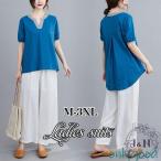 セットアップ レディース ブラウス 夏 麻 リネン パンツスーツ ワイドパンツ 夏コーデ 3点セット 入学式 服 母 シフォン おしゃれ オフィス 通勤 OL 50代