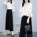 セットアップ レディース ブラウス 春 夏 シャツ パンツスーツ ワイドパンツ 春コーデ 3点セット 入学式 服 母 シフォン おしゃれ オフィス 通勤 OL 50代