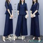 春コーデ セットアップ レディース 春 夏 パンツスーツ ワイドパンツ 2点セット 入学式 七分袖 服 母 シフォン おしゃれ ママ オフィス 通勤 OL 50代