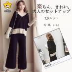 セットアップ レディース 長袖 2点セット ニット ワイドパンツ セーター 春 秋 冬 ハイウエスト ウエストゴム おしゃれ 卒業式 服 母 通勤 OL 30代 40代 50代