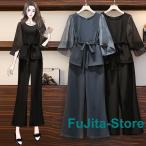 セットアップ レディース 春 夏 パンツスーツ ワイドパンツ 3点セット 入学式 七分袖 服 母 シフォン おしゃれ ママ オフィス 通勤 OL 50代