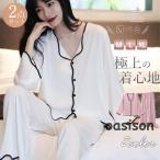 パジャマ レディース ルームウェア 長袖 長ズボン 冷感素材 シルク調 上下セット 薄手 ナイトウェア シンプル 春夏 部屋着 寝間着 涼しい 韓国風