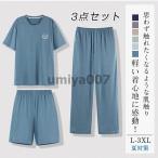 爆買 接触冷感 ルームウェア ひんやり 上下3点セット メンズ パジャマ Tシャツ ハーフパンツ ロングパンツ 夏用 セットアップ 部屋着 短パン 父の日