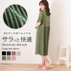 ルームウェア レディース 半袖 春 夏 ワンピース ロング プリーツ 部屋着 パジャマ 寝間着 ゆったり 涼しい ひんやり 薄手 おしゃれ プリーツ
