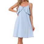 cheibear レディース スパゲッティストラップ ランジェリー ナイトドレス フルスリップ フリル キャミスリップ スリープウェア ブルー xL