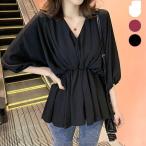 爆買 チュニック レディース 春 夏 春夏 トップス 白 黒 七分袖 ブラウス 7分袖 ホワイト ブラック ボルドー Vネック シャツ ウエストギャザー