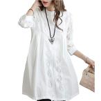 マタニティ レディース シャツ ワンピース ロング ブラウス コットン ひざ丈 ロング丈 薄手 長袖 爽やか 体型カバー オーバーシャツ 上品 春 夏 春夏 30代 40代