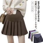 マタニティ プリーツスカート 厚手 アジャスター付き マタニティスカート Aライン 体型カバー ショートスカート 妊婦 産後 マタニティウェア ボトムス