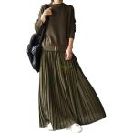 ワンピース レディース ニット ロング ワンピ ニットワンピース ロングワンピース 長袖 切り替え 無地 ベルト付き プリーツ ロング 春