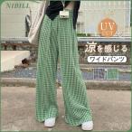 夏新作 ワイドパンツ レディース ロングパンツ ひんやり 絞り染め 接触冷感 パンツ ウエストゴム ボトムス リラックス 体型カバー 春 プリーツ
