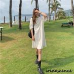 tシャツワンピース ロンt ゆったり 白 黒 体型カバー 夏新作 おしゃれ 春夏 トップス カジュアル ルームウェア 部屋着 ストリート系 かっこいい