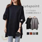 tシャツ ロング丈 半袖 オーバーサイズ レディース tシャツワンピース ロンt ゆったり 無地 体型カバー 夏新作 おしゃれ 春夏 トップス