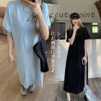 tシャツ ロング丈 半袖 着痩せ お出かけ 体型カバー 夏新作 部屋着 Tシャツワンピース チュニック カットソー おしゃれ 春夏 マキシ丈