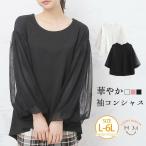 チュール ヘンリーネック トップス レディース 長袖Tシャツ ロンT カットソー シャツブラウス インナー 体型カバー ゆったり 楽ちん 長袖 シアー セレモニー 秋