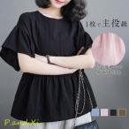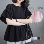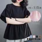 シャツブラウス トップス レディース ギャザー ブラウス 夏春 ラウンドネック 半袖 綿麻風 プルオーバー フレア裾 可愛い カジュアル フレア袖 フリル ゆったり