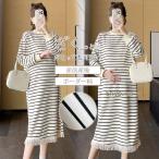 マタニティ 服 ワンピース リブワンピ ボーダー柄 ニットソー フレアワンピース 妊婦服 長袖 マタニティワンピース