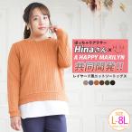 大きいサイズ レディース トップス hinaさんコラボ レイヤード風 切替 ニットソー トップス オリジナル プルオーバー LL 3L 4L 5L 6L 7L 8L 冬 MA