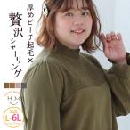 大きいサイズ レディース トップス 着ぶくれ回避の細魅せ美人 起毛 リブ リンガーデザイン トップス オリジナル カットソー プルオーバー LL 3L 4L 5L MA