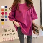 カットソー レディース 長袖 半袖 2type トップス Tシャツ クルーネック 柔らかい 春夏秋 tシャツ ロング丈 リラックス シンプル
