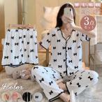 パジャマ レディース ルームウェア 3点セット 上下セット 半袖 短パン 長ズボン ゆったり 折り襟 ゆったり 涼しい 寝間着 春秋 夏 可愛い