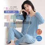 ルームウェア パジャマ レディース 前開き 上下セット 長袖 ロングパンツ ゆったり お尻隠れ 冷え性対策 部屋着 寝間着 通気性 外出