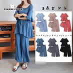 妊婦服 マタニティウエア セットアップ 上下セット 3点セット マタニティ 夏服 ホームウェア ゆったり 体型カバー Tシャツ 7分丈ズボン