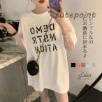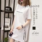 tシャツ ロング丈 半袖 オーバーサイズ レディース tシャツワンピース ロンt ゆったり 英字プリント 体型カバー 夏新作 おしゃれ 春夏 トップス