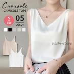 タンクトップ レディース キャミソール 大きいサイズ インナー トップス ノースリーブ シャツブラウス サテン ショート丈 ブラ紐隠し アンダーウェア 薄手