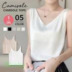 キャミソール インナー トップス タンクトップ レディース サテン 深v キャミタンク ノースリーブ vネック ショート丈 光沢 夏 肌着 おしゃれ