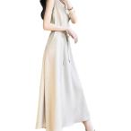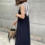 キャミソールワンピース ロング マキシ ノースリーブ インナーワンピース レディース ゾンチー クロスストラップが映える 重ね着しやすいロングキャミワンピ