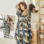 パジャマ 3点セットアップ レディース ルームウェア 上下セット 長袖ナイトガウン ロングパンツ キャミソール マタニティ オールインワン