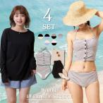 水着 水着セット 水着4点セット水着レディース ラッシュガード 長袖 大きいサイズ フリル ショートパンツ タンキニ スウィートマミー
