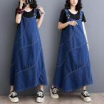 ワンピース レディース デニム ジャンパースカート オーバーオール サロペット オールインワン ロング丈 ゆったり 無地 可愛い 30代40代50代60代70代
