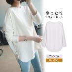 カットソー ロングTシャツ レディース ゆったり ラウンドカット 無地 長袖 トップス クルーネック ロンT やわらか ゆるTシャツ