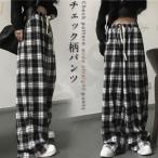 ワイドパンツ レディース チェック柄 ハイウエスト ストレートパンツ ガウチョパンツ ウエストゴム 着痩せ カジュアル ズボン 動きやすい ゆったり